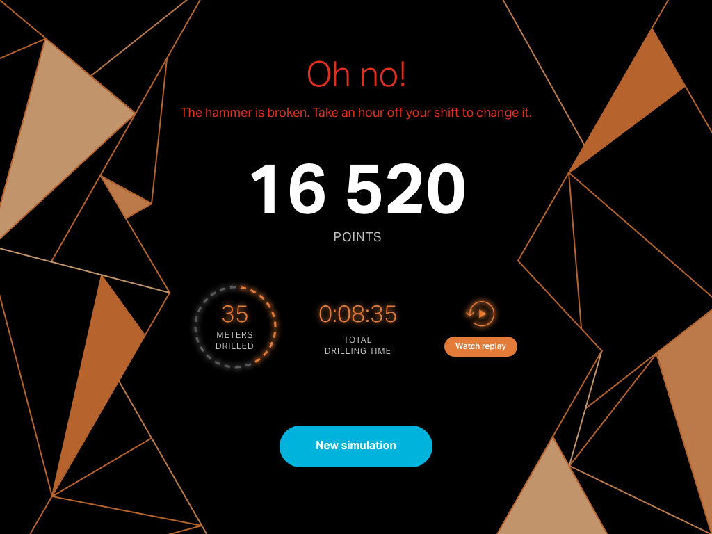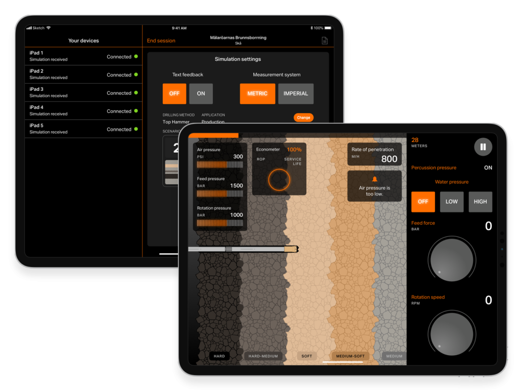 En interaktiv upplevelse med externa kontroller som efterliknar en autentisk borrupplevelse. Används i fysiska och digitala kundutbildningar för att öka medvetenheten om hur små justeringar kan ha stor inverkan på produktiviteten och maximera livslängden för bergverktyg.